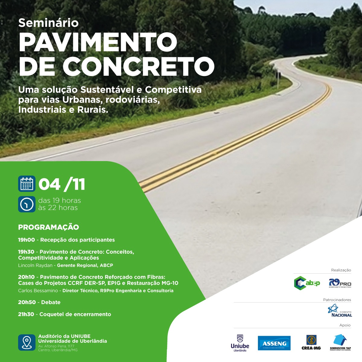 Auditório da UNIUBE – Universidade de Uberlândia Av. Afonso Pena, 1177, Centro, Uberlândia – MG